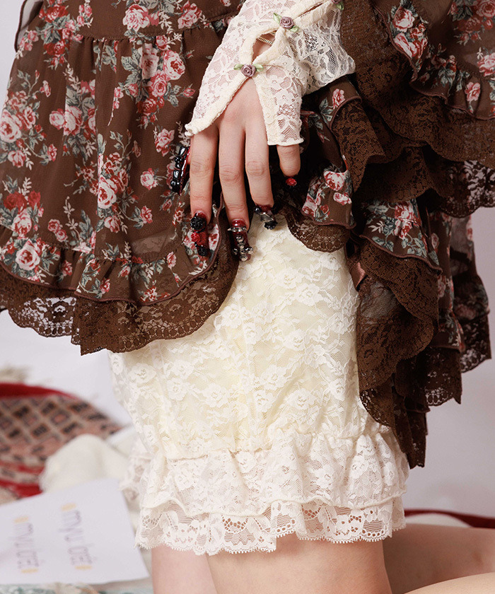 【商品介紹】 這款 myu:lorét -ミュウロレット- 蕾絲褲裙,為層搭穿搭增添浪漫感。彈性蕾絲覆蓋柔軟針織面料,呈現蓬鬆氣球剪裁,裙擺蕾絲荷葉邊隨動作自然擺動,打造甜美優雅的層次感造型。